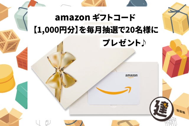 毎月抽選で20名様にamazonギフトコード1000円分プレゼントのチャンス!